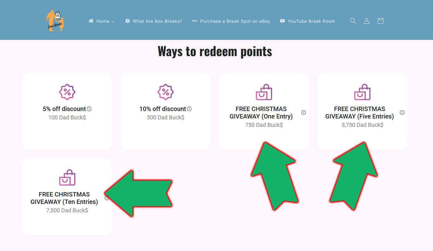 Note: Only Dad Buck$ Reward$ members can purchase these spots! DO NOT USE MONEY TO PAY FOR YOUR SPOT! Accepting Dad Buck$ Reward$ points only! Use this link to redeem points for this item (reference the image with green arrows): https://dad-breaks.com/pages/loyalty-page